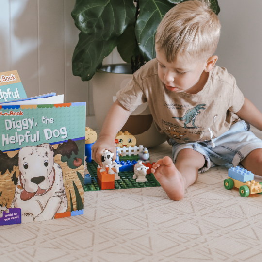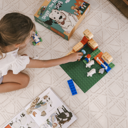 ✅ Interactive play: readers are prompted to use bricks to build and recreate scenes from the story.